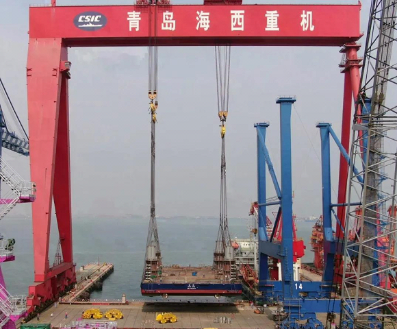 3月31日,中國船舶集團旗下中國動力子公司武漢船機海西重機總包承建的華東院306自升式海上勘探平臺完成整體吊裝下水重大節(jié)點。