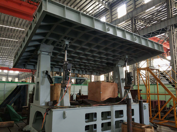搖擺模擬平臺由兩個單缸16噸推力的電動缸驅(qū)動,通過電動缸的運動帶動搖擺平臺轉(zhuǎn)動。可以根據(jù)實際需要,改變搖擺幅度和搖擺周期,或以隨機幅值和周期運動,以實現(xiàn)對海浪的模擬。