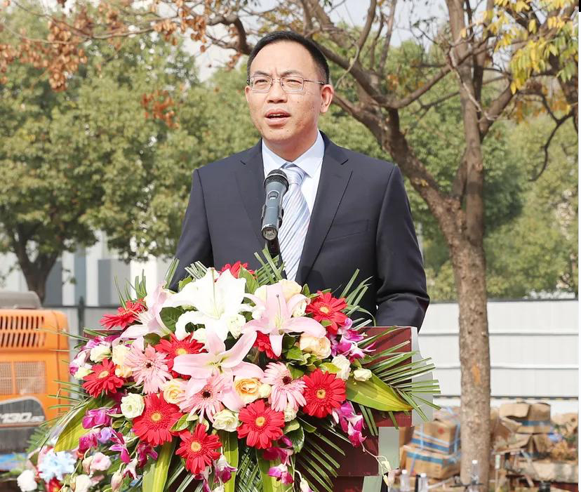 在全體參建人員熱烈的掌聲中,出席活動的領(lǐng)導(dǎo)同擎金鍬,為項目開工揚土培基,向協(xié)同研發(fā)中心工程開工表示祝賀。