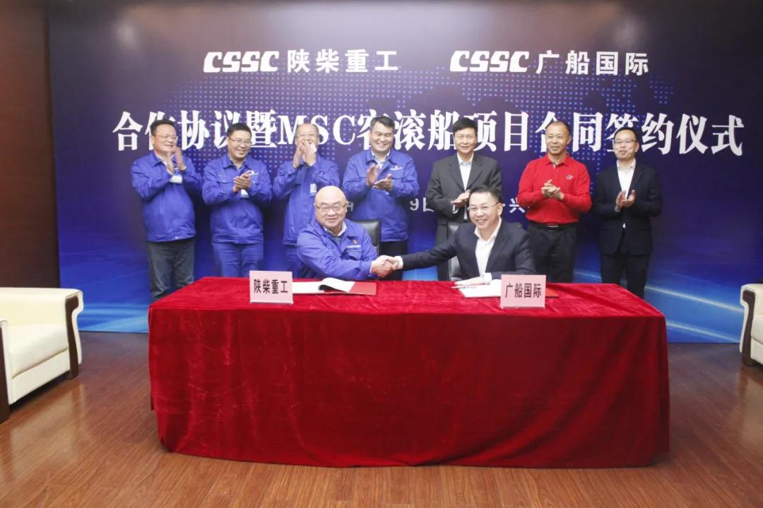 近日,中國船舶集團(tuán)旗下中國動(dòng)力子公司陜西柴油機(jī)重工有限公司與廣船國際有限公司戰(zhàn)略協(xié)議暨M(jìn)SC客滾船項(xiàng)目合同簽約儀式在公司舉行。廣船國際黨委書記、董事長陳忠前,黨委委員、副總經(jīng)理周旭輝,黨委委員、總監(jiān)黃謙,物資部設(shè)備室主任張芝,陜柴重工黨委書記、董事長趙同賓,總經(jīng)理、黨委副書記孫志宏,副總經(jīng)理?xiàng)钚∏寮跋嚓P(guān)單位負(fù)責(zé)同志參加了儀式。趙同賓與陳忠前,楊小清與周旭輝分別代表雙方在協(xié)議、合同上簽字。