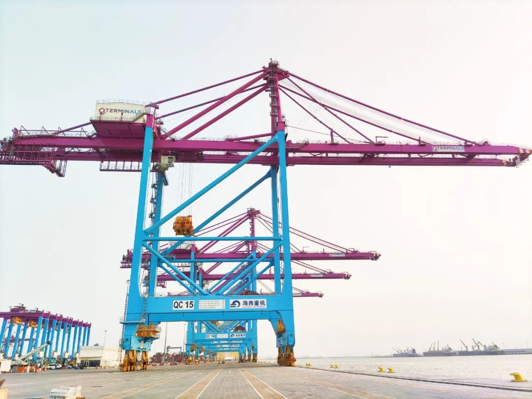在卡塔爾哈馬德新港,武漢船機(jī)海西重機(jī)外貿(mào)出口的高標(biāo)準(zhǔn)岸橋正在用戶碼頭整體滾裝上岸。隨著最后一臺輪胎吊開上碼頭,歷時(shí)5天4夜的卡塔爾哈馬德新港二期4臺岸橋、10臺輪胎吊卸船工作全部結(jié)束,比原計(jì)劃七天卸船時(shí)間提前兩天完成。面臨艱巨任務(wù),海西重機(jī)公司派往卡塔爾現(xiàn)場的黨員攻關(guān)團(tuán)隊(duì)提前熟悉,推演卸船方案,并及時(shí)與業(yè)主溝通協(xié)調(diào)卸船事項(xiàng)。團(tuán)隊(duì)的12名成員分工明確,各司其職。14臺設(shè)備順利完成卸船,是現(xiàn)場團(tuán)隊(duì)每名成員團(tuán)結(jié)協(xié)作和辛勤付出的結(jié)果。