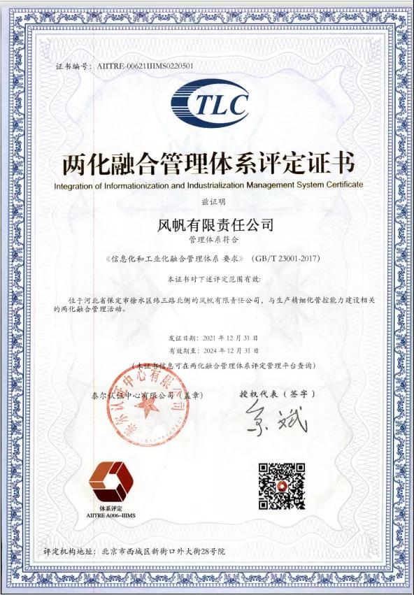 通過兩化融合管理體系認(rèn)證,標(biāo)志著風(fēng)帆公司在推進(jìn)工業(yè)化和信息化融合方面取得了新突破,在持續(xù)優(yōu)化管理,深入貫徹融合和創(chuàng)新理念的過程中,風(fēng)帆公司力爭保持可持續(xù)競爭優(yōu)勢,強(qiáng)化信息化環(huán)境下的新型能力。