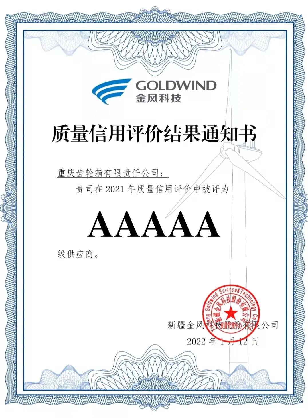 近日,中國(guó)船舶集團(tuán)旗下中國(guó)動(dòng)力子公司重齒公司憑借著優(yōu)質(zhì)的產(chǎn)品和出色的服務(wù),在金風(fēng)科技2021年質(zhì)量信用評(píng)價(jià)中再一次被評(píng)為AAAAA級(jí)供應(yīng)商,這是重齒公司連續(xù)三年被評(píng)為5A級(jí)供應(yīng)商!