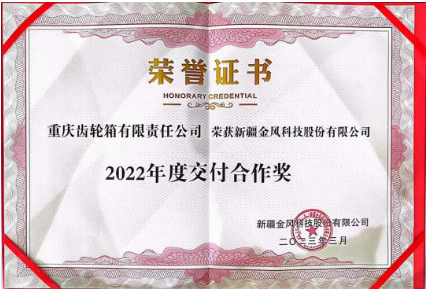 重齒公司同金風科技自1996年來開始全方面合作,已經攜手走過26年,近年來重齒公司偏航變槳齒輪箱在精益生產,質量提升,售后響應,降本增效等多方面全面提升,伴隨金風科技的步伐不斷成長。該獎項既是金風科技對重齒公司2022年的商務合作、產品交付、售后服務等多方面表現給予的充分認可,也是對雙方2023年乃至后續(xù)進一步合作寄托美好的愿景。
