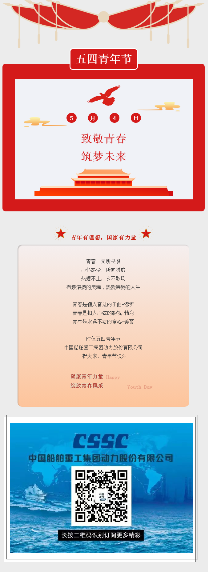 中國船舶重工集團動力股份有限公司祝您五四青年節(jié)快樂!
