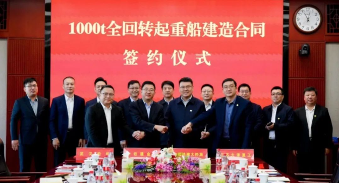 2023年12月27日,中國船舶集團旗下中國動力子公司武漢船機承接中國鐵建大橋局1000噸起重船核心裝備全回轉起重機訂單。公司副總經理孫凱出席了簽約儀式。