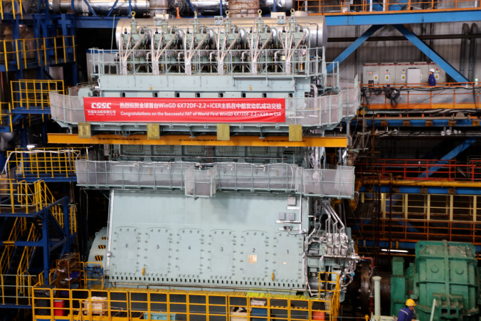 3月29日,世界首臺W6X72DF-2.2+iCER主機(jī)在中國船舶集團(tuán)旗下中國動力子公司中船發(fā)動機(jī)成功交驗(yàn),該主機(jī)將安裝在大連船舶重工集團(tuán)有限公司為CMES LNG CARRIER建造的175000DWT LNG運(yùn)輸船上。這款主機(jī)最大持續(xù)功率2.12萬馬力、重達(dá)550噸,首次配備iCER低壓廢氣循環(huán)技術(shù),廢氣循環(huán)率高達(dá)50%,相比傳統(tǒng)機(jī)型,處理廢氣更加綠色高效。無論是在燃油和燃?xì)饽J较?,該主機(jī)都能滿足TierIII排放要求,其燃燒性能、排放性能、燃油消耗進(jìn)一步優(yōu)化,更加符合船舶行業(yè)綠色低碳的發(fā)展趨勢。此外,該主機(jī)在發(fā)動機(jī)能耗、系統(tǒng)集成度以及系統(tǒng)安全性等方面具有較強(qiáng)市場競爭優(yōu)勢。