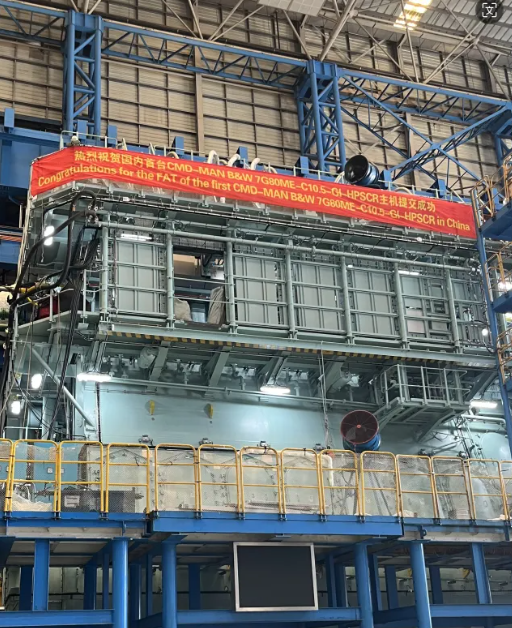 2024年8月9日,中國動力子公司中船動力(集團)有限公司下屬上海中船三井造船柴油機有限公司順利交付了國內首臺7G80ME-C10.5-GI-HPSCR 雙燃料發(fā)動機。建造期間,中船三井廣大干部職工“戰(zhàn)高溫”、“斗難題”,秉承艱苦奮斗的精神,用精湛的技術確保了發(fā)動機的高質量交付。后續(xù)該機將被安裝于大連中遠海運川崎船舶工程有限公司為船東MOL建造的30.9萬噸油輪上。