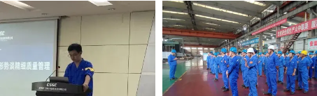中船安柴分管質(zhì)量領導以“從質(zhì)量形勢談精細質(zhì)量管理”為主題,從《質(zhì)量強國建設綱要》和《船舶制造業(yè)綠色發(fā)展行動綱要》談公司當前的接單狀況和面臨的質(zhì)量形勢,結合公司內(nèi)外部問題和典型案例,談精細化質(zhì)量管理和過程質(zhì)量控制。