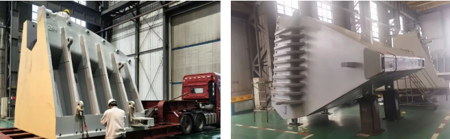 近日,中船集團(tuán)旗下中國動力子公司武漢船機(jī)承制的張靖皋長江大橋北航道橋第一批索鞍發(fā)運(yùn),此次發(fā)運(yùn)包含主索鞍4套、散索鞍2套,其中散索鞍鞍體重約90噸,主索鞍鞍體最大單體重約101噸,主索鞍鞍體鎖合重達(dá)196噸,這是公司目前在制的最大索鞍。