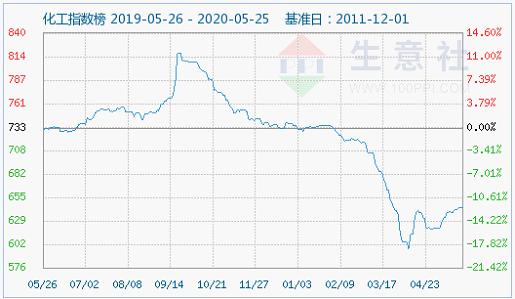 行業(yè)方面:5月25日化工指數(shù)為644點(diǎn),與昨日持平,較周期內(nèi)最高點(diǎn)1016點(diǎn)(2012-03-13)下降了36.61%,較2020年04月08日最低點(diǎn)598點(diǎn)上漲了7.69%。(注:周期指2011-12-01至今)。