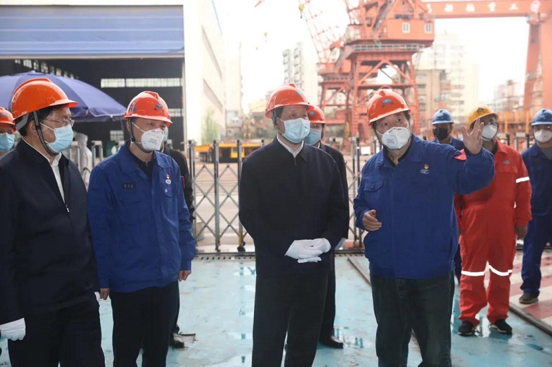 ????3月25日,湖北省委書記應(yīng)勇到中國船舶集團有限公司所屬武船集團調(diào)研復(fù)工復(fù)產(chǎn)、加快發(fā)展情況。省委常委、武漢市委書記王忠林,副省長曹廣晶及省委、省政府有關(guān)部門負(fù)責(zé)同志參加調(diào)研。