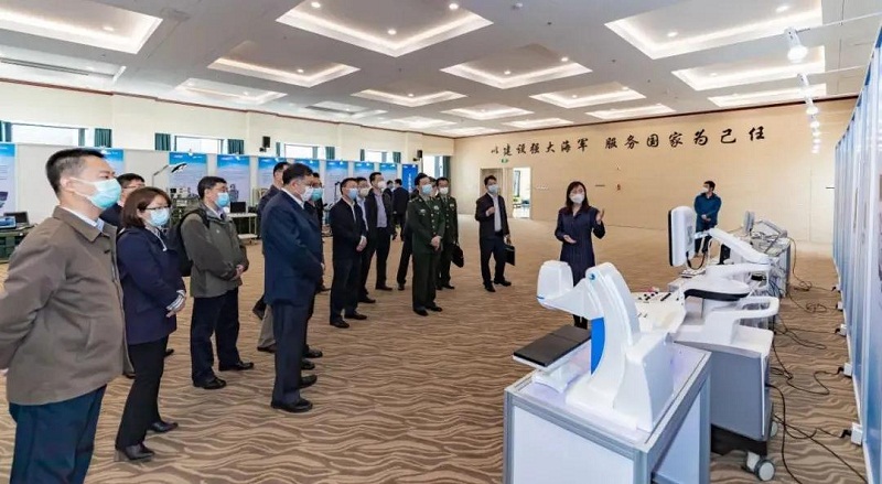 ????莊樹新一行參觀了中國船舶集團骨干衛(wèi)勤裝備和彩色多普勒超聲診斷儀等醫(yī)療器械展示,聽取了中國船舶集團部署推進應(yīng)急醫(yī)療衛(wèi)勤裝備、智能移動方艙醫(yī)院與高端醫(yī)療器械領(lǐng)域關(guān)鍵核心技術(shù)攻關(guān)及產(chǎn)業(yè)化發(fā)展等有關(guān)情況匯報。