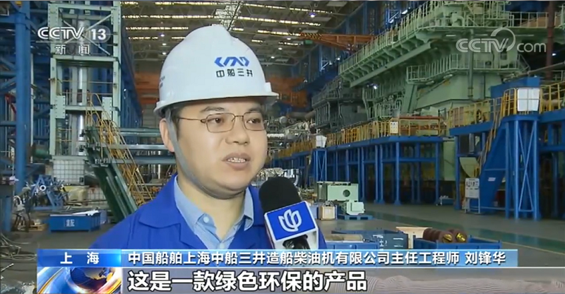 ????中國船舶上海中船三井造船柴油機(jī)有限公司主任工程師 劉鋒華:尺寸最大,達(dá)到了5層樓那么高,功率達(dá)到了63800多千瓦,功率也是最大的。這是一款綠色環(huán)保的產(chǎn)品,使用燃?xì)膺\(yùn)行時(shí)氮氧化物的排放不到常規(guī)發(fā)動(dòng)機(jī)的十分之一,硫氧化物和顆粒物的排放也是非常好的,不用裝任何后處理設(shè)備,都可以滿足IMO(國際海事組織)最新的排放法規(guī)要求。