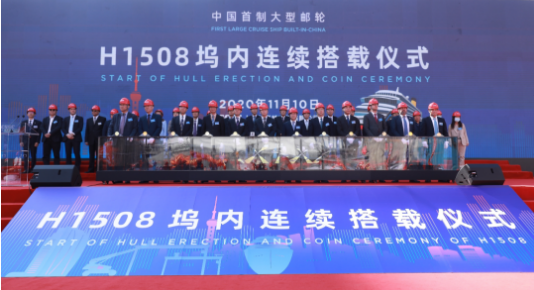 大型郵輪工程是中國(guó)船舶集團(tuán)貫徹習(xí)近平總書(shū)記重要指示精神、落實(shí)國(guó)家戰(zhàn)略、滿足人民美好生活需要的重大舉措,也是中國(guó)船舶集團(tuán)強(qiáng)化科技創(chuàng)新、促進(jìn)轉(zhuǎn)型升級(jí)、推動(dòng)高質(zhì)量發(fā)展的一號(hào)工程。2018年11月6日,中國(guó)船舶集團(tuán)與美國(guó)嘉年華集團(tuán)、意大利芬坎蒂尼集團(tuán)在首屆中國(guó)國(guó)際進(jìn)口博覽會(huì)上正式簽訂2+4艘13.5萬(wàn)總噸Vista級(jí)大型郵輪建造合同,并舉行了中國(guó)船舶集團(tuán)大型郵輪項(xiàng)目工程正式啟動(dòng)儀式。這是我國(guó)首次簽訂真正意義上的大型郵輪建造合同,開(kāi)啟了中國(guó)船舶工業(yè)建造大型郵輪的新時(shí)代。2019年10月18日,中國(guó)首制大型郵輪在外高橋造船正式開(kāi)工點(diǎn)火進(jìn)行鋼板切割,全面進(jìn)入實(shí)質(zhì)性建造階段。一年多來(lái),在中國(guó)船舶集團(tuán)的堅(jiān)強(qiáng)領(lǐng)導(dǎo)下,在中船郵輪科技發(fā)展有限公司、中船第九設(shè)計(jì)研究院工程有限公司、上海船舶工藝研究所等兄弟單位的大力支持下,外高橋造船經(jīng)受住了新冠肺炎疫情的洗禮和考驗(yàn),克服了物資采購(gòu)、薄板車(chē)間流水線建設(shè)滯后等一系列困難,一步一個(gè)腳印,如期實(shí)現(xiàn)了塢內(nèi)連續(xù)搭載總裝的里程碑節(jié)點(diǎn)。