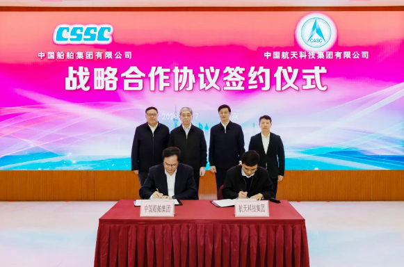 12月7日,中國船舶集團有限公司與中國航天科技集團有限公司在京簽署戰(zhàn)略合作協(xié)議。中國船舶集團黨組書記、董事長雷凡培,黨組副書記、總經(jīng)理楊金成,黨組成員、副總經(jīng)理錢建平,航天科技集團黨組書記、董事長吳燕生,黨組副書記、總經(jīng)理徐強,黨組成員、副總經(jīng)理張忠陽出席簽約儀式。楊金成、徐強分別代表雙方在協(xié)議上簽字。