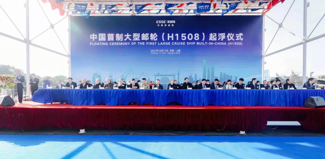 中國船舶集團(tuán)總部有關(guān)部門和所屬相關(guān)企業(yè),以及上海海事局、上海港引航站、嘉年華集團(tuán)、芬坎蒂尼集團(tuán)、中國進(jìn)出口銀行、中國建設(shè)銀行、中國銀行、中國人民財(cái)產(chǎn)保險(xiǎn)股份有限公司、勞氏船級(jí)社、中國船級(jí)社、意大利船級(jí)社、上海建工集團(tuán)等負(fù)責(zé)人出席起浮儀式。