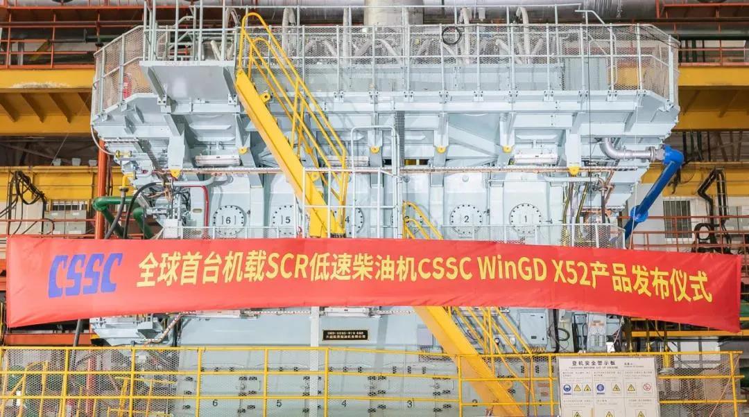 2021年7月22日,由中國船舶集團(tuán)旗下中船動力集團(tuán)自主研發(fā)、大連船柴建造的全球首臺機(jī)載SCR(選擇性催化還原系統(tǒng))船用低速機(jī)CSSC WinGD X52正式向全球發(fā)布。