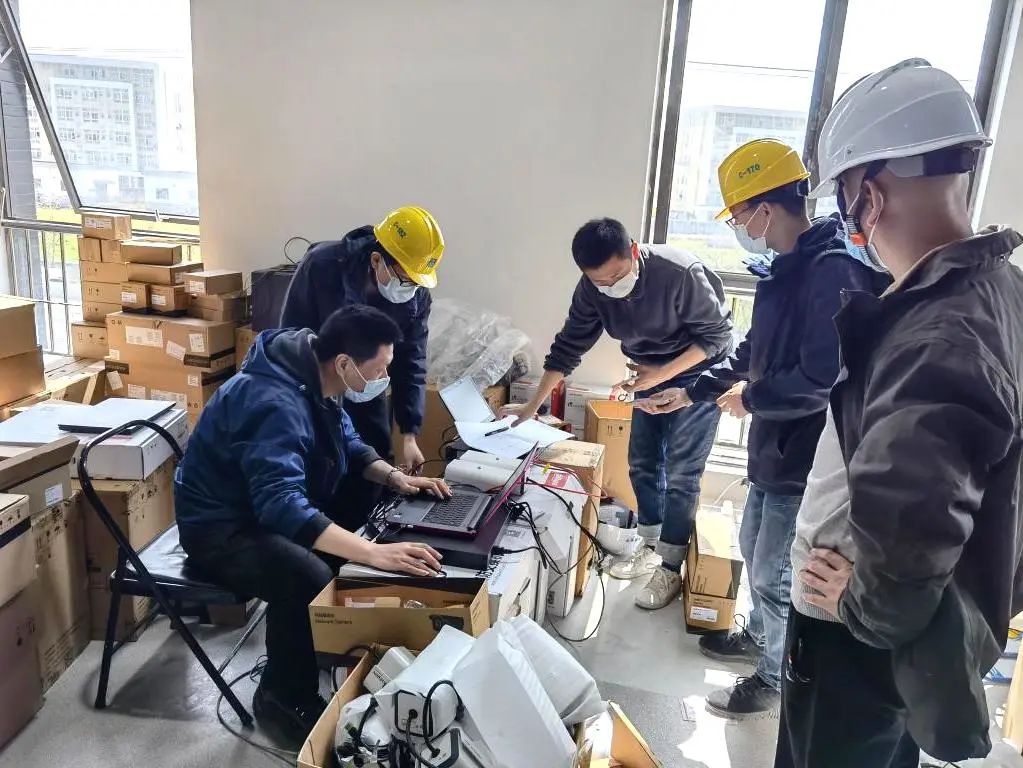 工程弱電安防系統(tǒng)是一塊“硬骨頭”。七一六所自3月22日起就連夜組織進(jìn)行工程的弱電安防設(shè)計(jì),23日開工建設(shè),26日完成一號(hào)工程整體交付,30日完成三號(hào)工程弱電安防主體施工任務(wù),連續(xù)幾個(gè)通宵;搶進(jìn)度、抓質(zhì)量、保安全,反反復(fù)復(fù)地設(shè)計(jì)改圖、不停地轉(zhuǎn)換工作界面、現(xiàn)場驗(yàn)收過程出現(xiàn)的醫(yī)護(hù)新需求、施工現(xiàn)場造成的返工維修……現(xiàn)場團(tuán)隊(duì)分成多個(gè)工作組,細(xì)化職責(zé)分工、積極統(tǒng)籌調(diào)度,他們咬牙堅(jiān)持每天只睡一兩個(gè)小時(shí),最終高質(zhì)量完成了任務(wù)。