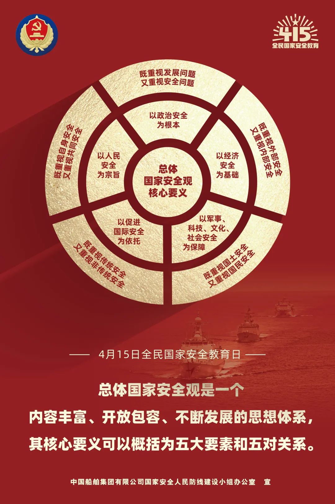 黨的十九屆六中全會(huì)指出,總體國(guó)家安全觀涵蓋政治、軍事、國(guó)土、經(jīng)濟(jì)、文化、社會(huì)、科技、網(wǎng)絡(luò)、生態(tài)、資源、核、海外利益、太空、深海、極地、生物等諸多領(lǐng)域,要求堅(jiān)定維護(hù)國(guó)家政權(quán)安全、制度安全、意識(shí)形態(tài)安全,加強(qiáng)國(guó)家安全宣傳教育和全民國(guó)防教育,鞏固國(guó)家安全人民防線。