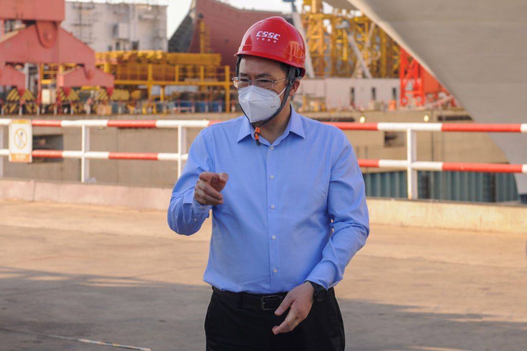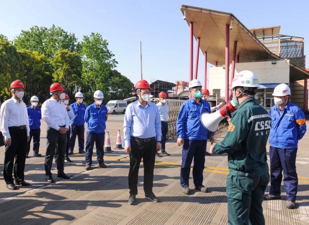 5月5日,中國船舶集團(tuán)有限公司黨組副書記、總經(jīng)理楊金成到集團(tuán)公司旗下上海外高橋造船有限公司調(diào)研疫情防控和復(fù)工復(fù)產(chǎn)工作。中國船舶集團(tuán)黨組成員、副總經(jīng)理孫偉參加調(diào)研。