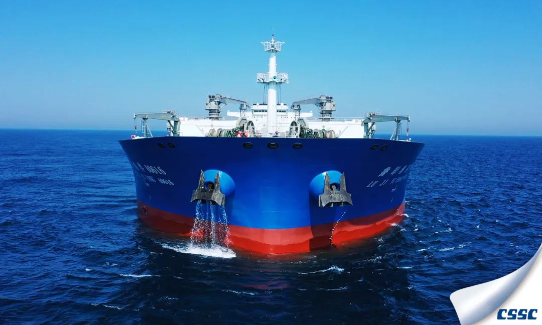 滬東中華建造的我國(guó)首艘江海聯(lián)運(yùn)型8萬(wàn)立方米LNG運(yùn)輸船“傳奇太陽(yáng)”號(hào)在長(zhǎng)興造船基地命名交付。她猶如一位亭亭玉立的舞者,在蔚藍(lán)色的綢面畫(huà)出美妙的曲線。