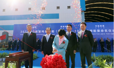 9月24日,中國船舶集團旗下大船集團聯合中船貿易為招商局集團旗下招商輪船建造的30萬噸VLCC “新伊敦”輪正式命名交付。同日,大船集團聯合中船貿易成功承接了招商輪船2艘17.5萬立方米大型LNG運輸船新造項目。中國船舶集團黨組副書記、總經理楊金成,黨組成員、副總經理孫偉,招商局集團黨委書記、董事長繆建民,黨委副書記、總經理胡建華,紀委書記、董事段湘暉,黨委委員、副總經理李百安出席儀式??娊駷樾麓瑮罱鸪?、胡建華在儀式上致辭,段湘暉為新船砍纜。