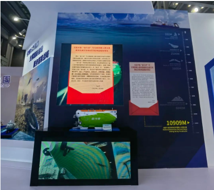 吸引眼球的還有“奮斗者”號載人潛水器,以及雪龍-2號、遠(yuǎn)望7號等深海極地重大裝備、航天測量船家族。在展臺處,不僅播放了“奮斗者”號萬米深潛坐底激動人心的畫面,還展示了習(xí)近平總書記的賀信,激勵中國船舶人踔厲奮發(fā)、勇毅前行。