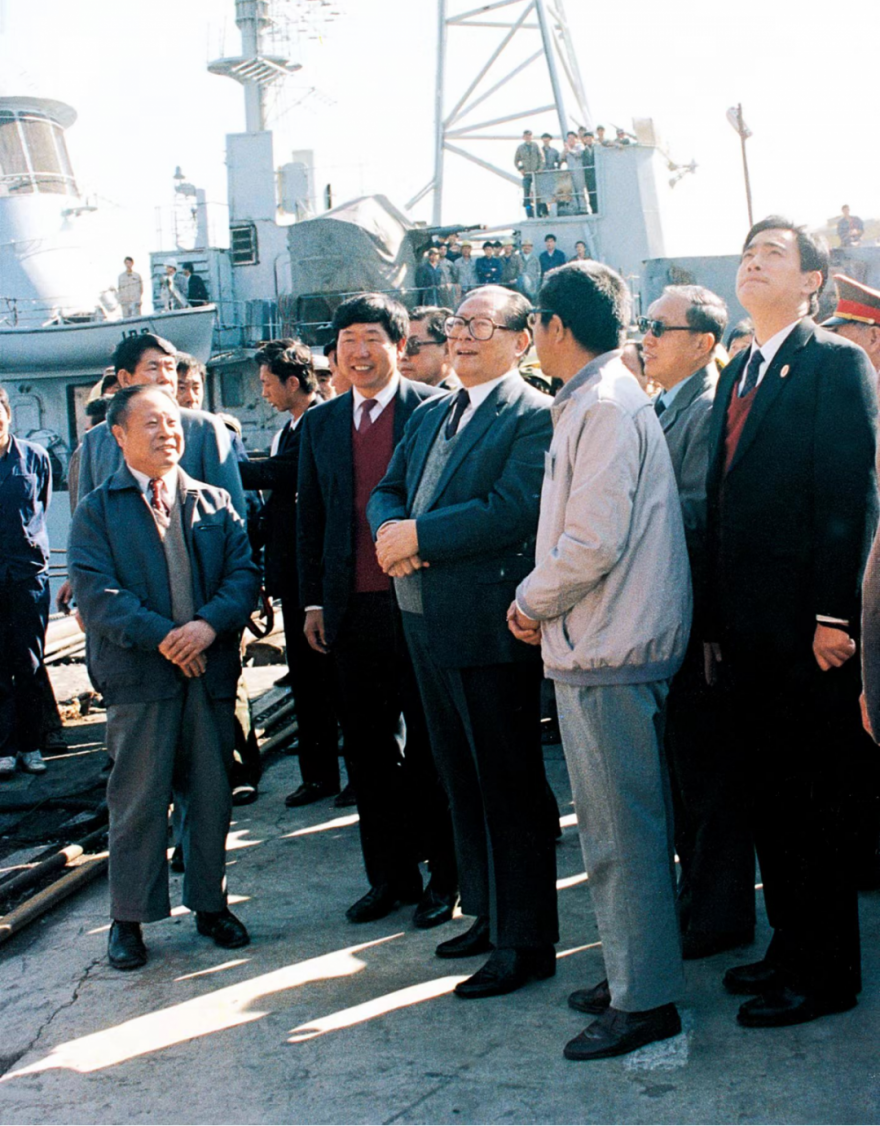 江澤民同志曾先后三次到江南造船視察。圖為1994年4月29日,江澤民同志視察江南造船。據(jù)相關人士回憶,當時江澤民同志視察江南有兩個原因,一是“五一”節(jié)快要到了,江澤民同志要看望工人階級,就選擇了江南造船,因為江南造船是產(chǎn)業(yè)工人的搖籃;第二個原因是112艦計劃當年5月8日前交艦,交艦前江澤民同志要先視察。