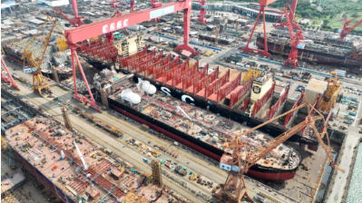 △ 廣船國(guó)際的船塢里,兩船出塢在做最后的準(zhǔn)備。
