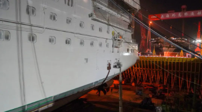△ 外高橋造船錨定國(guó)產(chǎn)首制大型郵輪“年中出塢、年底交付”目標(biāo),“五一”期間動(dòng)員組織超2000人全面推進(jìn)調(diào)試、內(nèi)裝等項(xiàng)目施工。