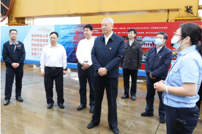 調(diào)研期間,中央主題教育第42指導(dǎo)組組長王壽君、副組長房德權(quán),成員程建宏、項(xiàng)紫君、仇國歡一行深入黃埔文沖科研生產(chǎn)現(xiàn)場(chǎng),登上在建重點(diǎn)船舶,詳細(xì)了解重點(diǎn)項(xiàng)目產(chǎn)品性能、技術(shù)優(yōu)勢(shì),聽取了關(guān)于設(shè)計(jì)研發(fā)、創(chuàng)新改進(jìn)、生產(chǎn)建造過程的介紹。指導(dǎo)組一行還走進(jìn)黃埔文沖廠史館,了解黃埔文沖170多年的發(fā)展歷程。