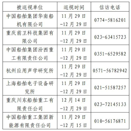 根據(jù)中國船舶集團(tuán)黨組2023年第二輪巡視工作部署,截至2023年11月29日,巡視工作已經(jīng)鋪開。其中,對中國船舶集團(tuán)華南船機(jī)有限公司、重慶前衛(wèi)科技集團(tuán)有限公司、中國船舶集團(tuán)汾西重工有限責(zé)任公司、杭州應(yīng)用聲學(xué)研究所、上海船舶電子設(shè)備研究所等5家單位開展常規(guī)巡視,對重慶川東船舶重工有限責(zé)任公司、中國船舶重工集團(tuán)新能源有限責(zé)任公司等2家單位開展專項(xiàng)巡視。