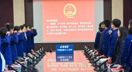 大連造船組織“一總部四基地”同步開展法治宣傳;中船投資通過“宣”“教”“測(cè)”立體宣傳活動(dòng)激發(fā)全員堅(jiān)定憲法信仰;七一七所開展“一宣一諾”“一講一詢”“一平臺(tái)一考試”系列活動(dòng);黃埔文沖、廣西公司、汾西重工等單位與地方法院合作共建,邀請(qǐng)法官送法進(jìn)廠;中船發(fā)動(dòng)機(jī)董事長(zhǎng)、總經(jīng)理參與錄制法治宣傳微視頻;七二五所認(rèn)真開展憲法宣誓活動(dòng);八院組織員工進(jìn)行憲法法條誦讀;中船澄西演繹普法情景劇,通過身邊實(shí)際案例普及法治觀念;廣船國(guó)際、昆船公司將法治宣傳周延展為“法治宣傳月”,進(jìn)一步拓展活動(dòng)內(nèi)容。