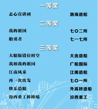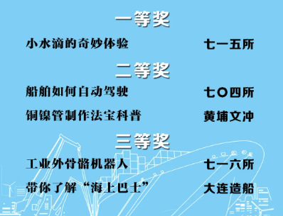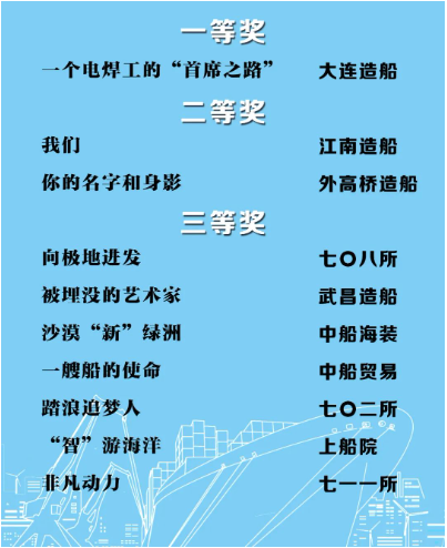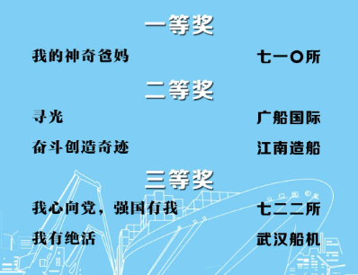 由中國船舶集團(tuán)黨群工作部指導(dǎo),中國船舶集團(tuán)新聞宣傳中心/中國船舶報(bào)社承辦的中國船舶集團(tuán)第二屆短視頻大賽圓滿落幕。經(jīng)過前期篩選,網(wǎng)絡(luò)投票,并特邀國務(wù)院國資委新聞中心、國防科工局新聞宣傳中心、中央電視臺、微博政務(wù)、中國船舶集團(tuán)黨群工作部專家評審,大賽最終評出一等獎(jiǎng)5部,二等獎(jiǎng)10部,三等獎(jiǎng)23部,同時(shí)評出優(yōu)秀組織獎(jiǎng)單位6家。名單如下,快來圍觀!