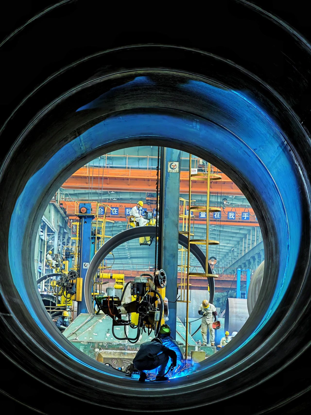 這是一幅難得一見的LNG船液貨艙內(nèi)部場景,猶如外星飛船艙室的氛圍,正是我們造船工人一寸一寸建造而成。