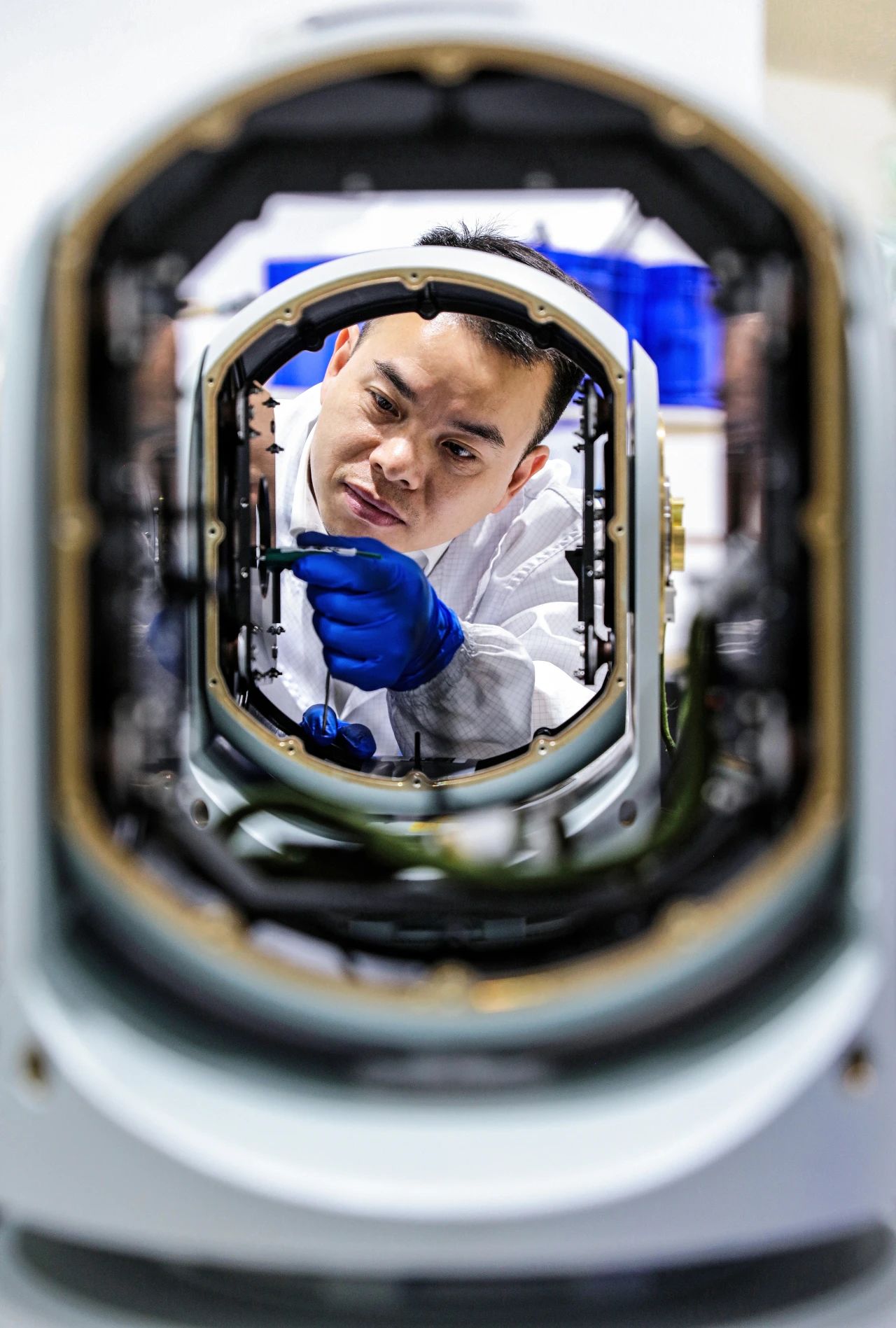 七一七所技術(shù)人員正在裝調(diào)光軸,確保光路的穩(wěn)定傳導,在精確裝調(diào)中堅守本心、求精求新,以匠心確保產(chǎn)品精度。