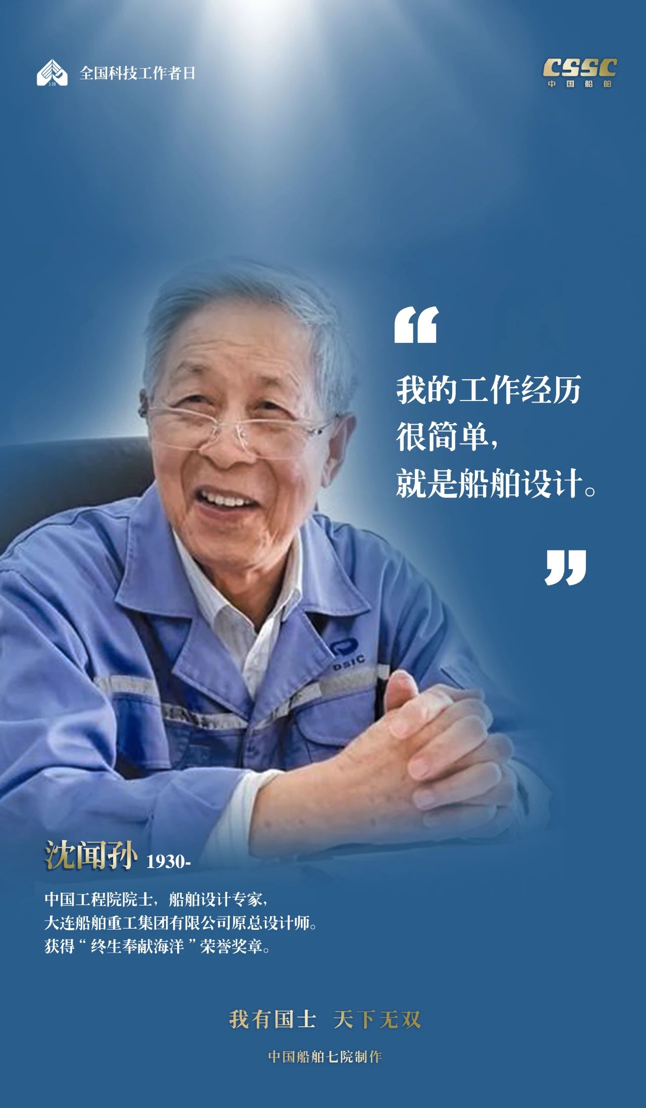 2024年5月30日,是第八個(gè)“全國(guó)科技工作者日”,一代代中國(guó)船舶人胸懷國(guó)之大者,無怨無悔勇攀科技高峰。他們的事跡也許無人知曉,他們的智慧卻是科學(xué)火種,他們用精神點(diǎn)亮希望之光,他們用勇氣探尋未來之路,他們有個(gè)共同的名字中國(guó)船舶科技工作者。