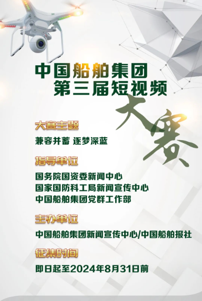 2024年是新中國成立75周年,也是全面貫徹黨的二十大精神的關(guān)鍵之年。這一年,中國船舶集團以習(xí)近平新時代中國特色社會主義思想為指導(dǎo),全面實施“1234”高質(zhì)量發(fā)展方略,以“三贏”提質(zhì)效、以改革求突破、以創(chuàng)新促發(fā)展,全面開創(chuàng)建設(shè)世界一流船舶集團新局面。為更加全面生動展示中國船舶人凝心聚力、砥礪奮發(fā),建設(shè)世界一流,向新中國成立75周年獻禮的精神風(fēng)貌與奮斗熱情,中國船舶集團新聞宣傳中心/中國船舶報社組織開展“兼容并蓄 逐夢深藍”為主題的中國船舶集團第三屆短視頻大賽。