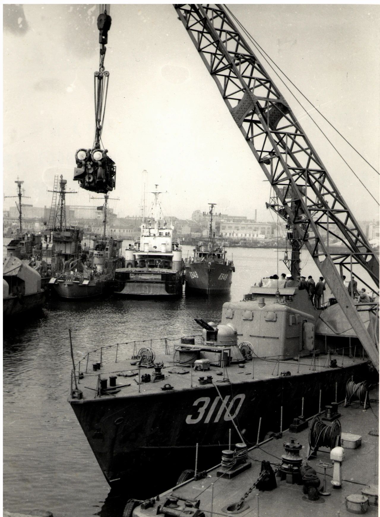 1950年廣州1950年,萬山海戰(zhàn)功臣“前進(jìn)號”炮艇在工廠下水。