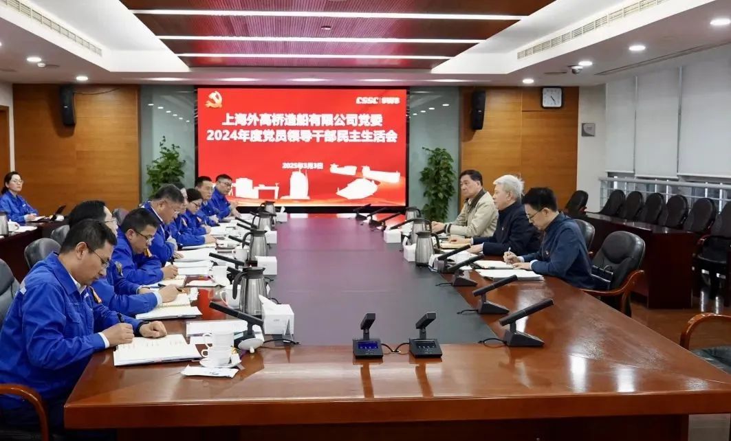 中船集團(tuán)旗下外高橋造船黨委召開2024年度黨員領(lǐng)導(dǎo)干部民主生活會(huì)。集團(tuán)公司黨組書記、董事長(zhǎng)徐鵬到會(huì)指導(dǎo)并點(diǎn)評(píng)。