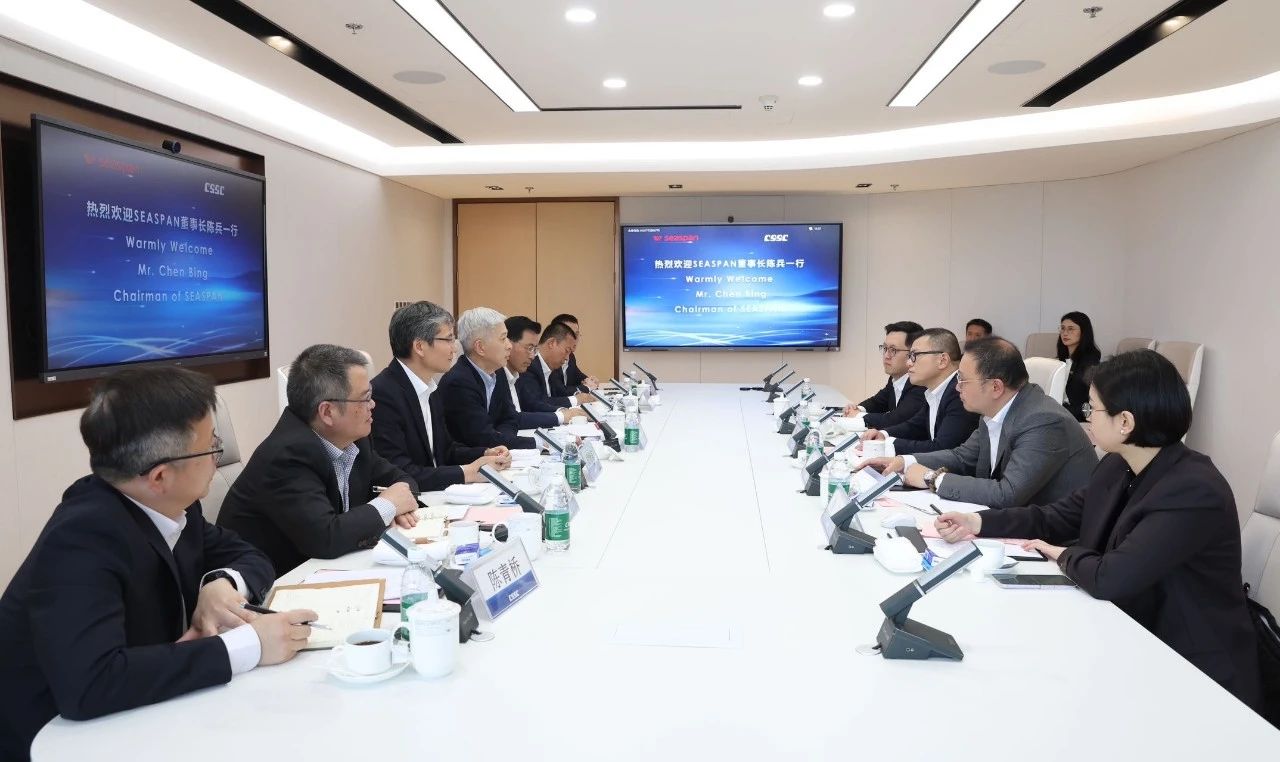 徐鵬對(duì)陳兵一行的來(lái)訪表示歡迎,并感謝Seaspan公司對(duì)中船集團(tuán)的長(zhǎng)期信任與支持。徐鵬表示,中船集團(tuán)將持續(xù)提升自身綜合能力,努力為客戶(hù)提供更優(yōu)質(zhì)的產(chǎn)品和服務(wù)。Seaspan公司是全球最大的獨(dú)立集裝箱船租賃船東公司,與中船集團(tuán)在長(zhǎng)期合作中結(jié)下了深厚友誼。未來(lái),希望雙方建立常態(tài)化溝通交流機(jī)制,在船舶建造與升級(jí)改造、國(guó)際船海市場(chǎng)拓展、船舶全生命周期運(yùn)維、綠色能源開(kāi)發(fā)等方面持續(xù)深化進(jìn)一步合作,共同為行業(yè)持續(xù)健康發(fā)展作出應(yīng)有貢獻(xiàn)。
