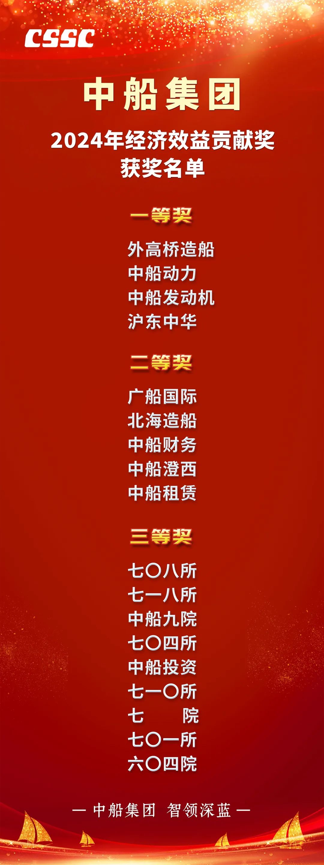 2024年,面對復(fù)雜多變的外部環(huán)境和不確定因素,中國船舶集團(tuán)有限公司各二級(jí)管理單位著力拓市場、強(qiáng)管理、抓改革、增效益,實(shí)現(xiàn)了量的合理增長、質(zhì)的有效提升,整體經(jīng)濟(jì)效益再創(chuàng)新高。為樹立典范,表彰先進(jìn),經(jīng)中船集團(tuán)黨組研究,決定授予外高橋造船等18家單位2024年中船集團(tuán)經(jīng)濟(jì)效益貢獻(xiàn)獎(jiǎng)。