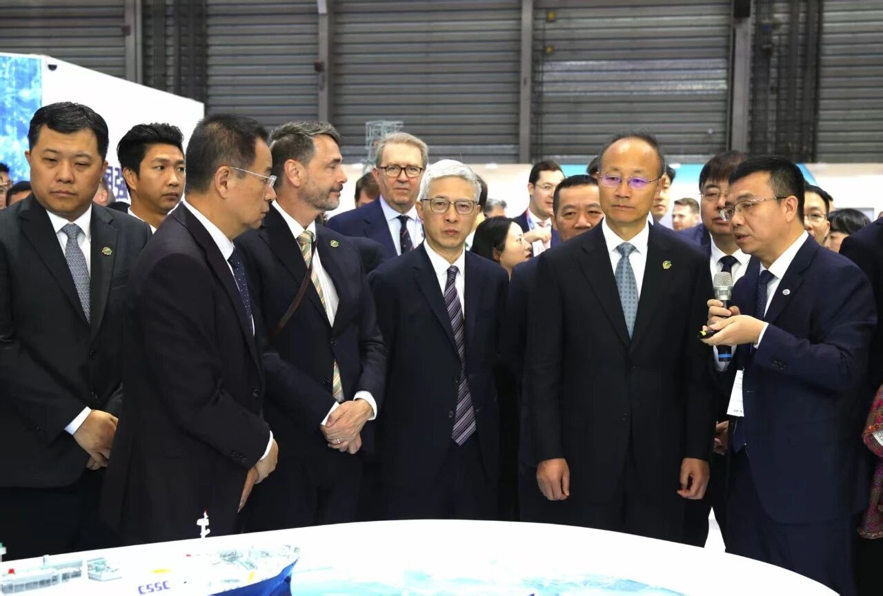 中國國際海事會展被譽(yù)為全球海事業(yè)的“風(fēng)向標(biāo)”,也是全球最具影響力和規(guī)模最大的海事專業(yè)會展。本次會展,中船集團(tuán)展臺面積達(dá)4000平方米,以“向海圖強(qiáng) 智領(lǐng)深藍(lán)”為主題,聚焦“高端、綠色、智能、深海、極地、生態(tài)”主線,分設(shè)高端產(chǎn)品、綠色能源、智能技術(shù)、深海開發(fā)、極地探索、生態(tài)融合等六大展區(qū),集中展示中船集團(tuán)品牌形象,呈現(xiàn)高端產(chǎn)品、卓越技術(shù)和生態(tài)服務(wù)。其中,“夢想”號大洋鉆探船、國產(chǎn)大型郵輪“愛達(dá)·花城號”、27.1萬立方米LNG船、核動力集裝箱船等旗艦產(chǎn)品,32.5萬噸甲醇雙燃料礦砂船等綠色船型以及WinGD10X92DF-M-1.0甲醇雙燃料主機(jī)、BrilliancE B型燃料艙、船舶碳捕集裝置等低碳零碳轉(zhuǎn)型重要裝備,“珠海云”號智能無人科考母船、“未來”號深遠(yuǎn)海綠色智能技術(shù)試驗船等智能船舶平臺,“奮斗者”號等系列載人潛水器、“深海一號”等尖端探索裝備、深水鉆井平臺等深海開發(fā)裝備以及15萬噸智慧漁業(yè)養(yǎng)殖工船等深海裝備,“雪龍2”號極地科考破冰船、“極地”號破冰調(diào)查船等極地裝備等一系列代表中船集團(tuán)最高水平和最先進(jìn)研發(fā)能力的產(chǎn)品裝備和技術(shù)紛紛亮相,聚焦現(xiàn)代海事服務(wù)體系建設(shè)的生態(tài)融合區(qū)集中展示中船集團(tuán)在供應(yīng)鏈、貿(mào)易、服務(wù)等領(lǐng)域的開放合作競爭優(yōu)勢。
